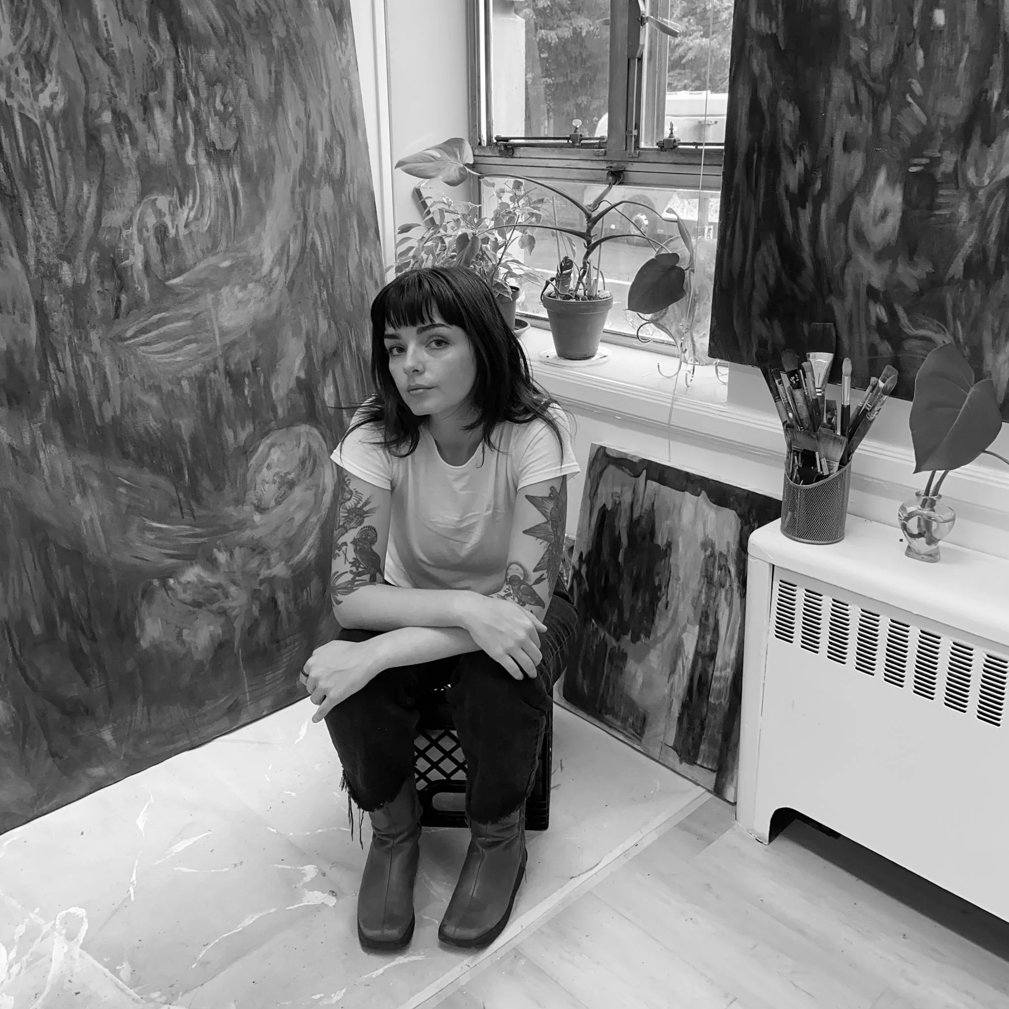 Rooted in painting and writing (while extended to other materials as the feeling strikes) my practise is guided by the alchemical study of relational experiences. The murky spaces between what is loved, lost, grieved, and desired are the muse. The lens I create through is deeply informed by my years spent in the occupation of caretaking. Both with individuals at the end of life and early years stages.